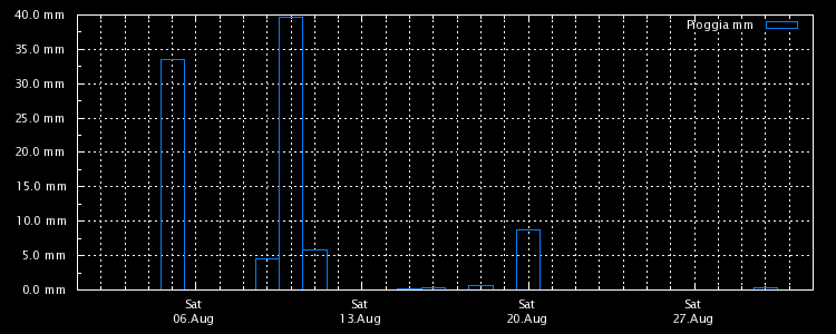 Inizio mese con variabilità associata a clima caldo umido, in seguito perlopiù soleggiato con formazione di nubi cumuliformi sui rilievi e qualche rovescio. Temperature minime stazionarie, massime in aumento. Venerdi 5 precipitazioni abbondanti già dal mattino e in gran parte della giornata, massime in brusco calo. Nel weekend correnti settentrionali sulle Alpi che portano cielo sereno o poco nuvoloso con temperature in lieve aumento sia nei valori minimi che nei valori massimi. Nella notte del 10 transita un fronte freddo che porta precipitazioni forti diffuse specie a sud e ovest. Successivamente nuvoloso con schiarite sempre più ampie nelle valli principali; in serata sui settori cento meridionali annuvolamenti e precipitazioni diffuse da deboli a moderate. Minime senza variazioni significative, massime in calo. Nel resto del mese alternanza di periodi di alta pressione con tempo instabile, temperature non molto elevate e minime sotto la media.