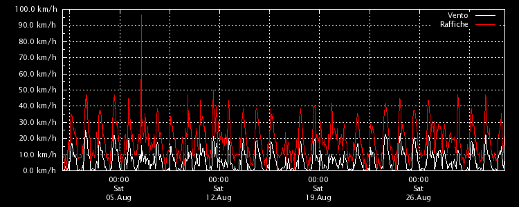 A fianco la tabella dei dati giornalieri in formato internazionale secondo lo standard NOAA