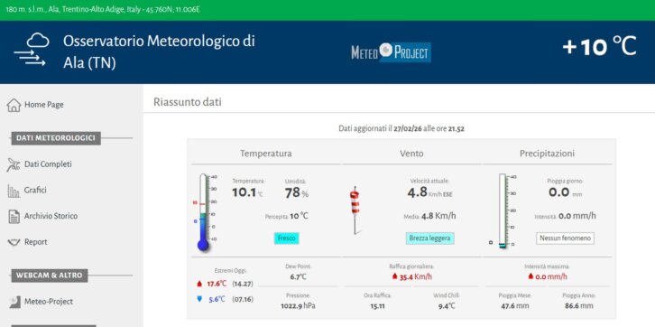 pressione, vento e precipitazioni giornalieri, mensili ed annuali.