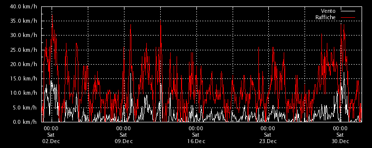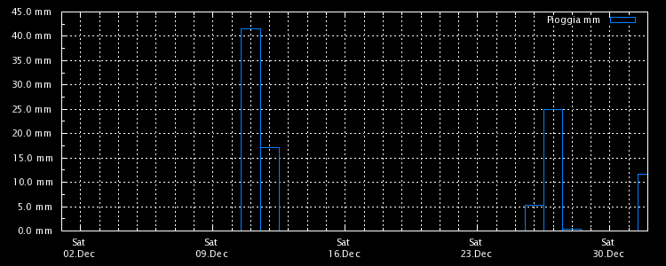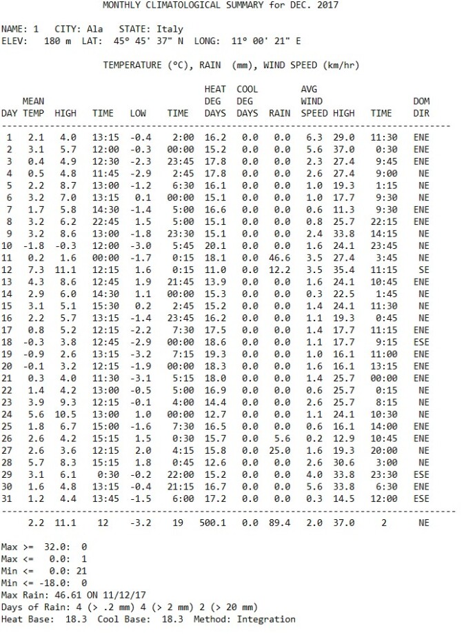 A fianco la tabella dei dati giornalieri in formato internazionale secondo lo standard NOAA