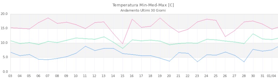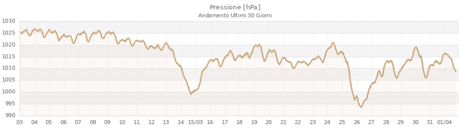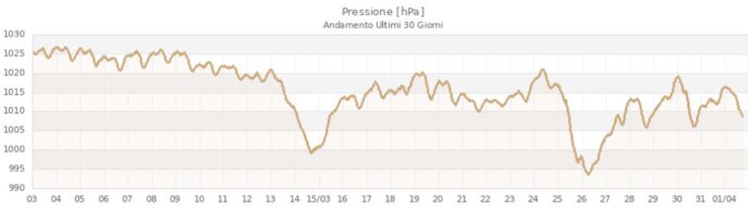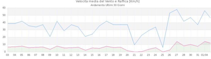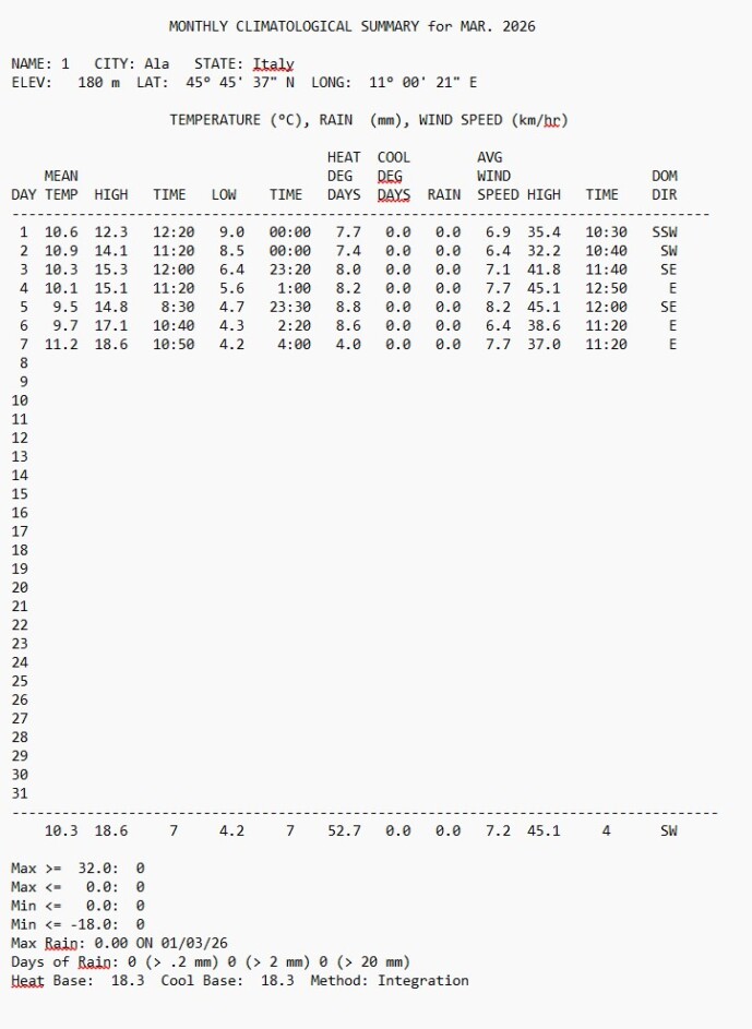 A fianco la tabella dei dati giornalieri in formato internazionale secondo lo standard NOAA