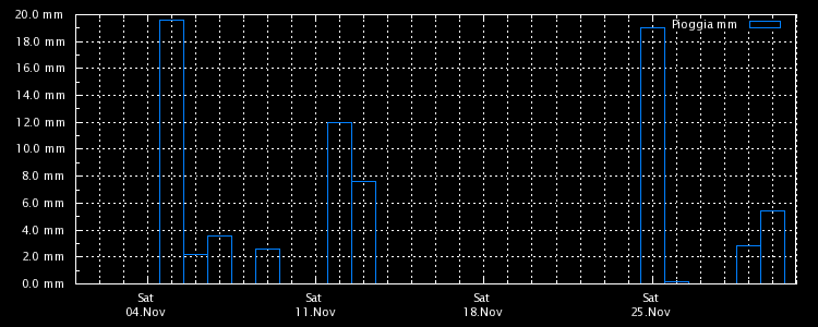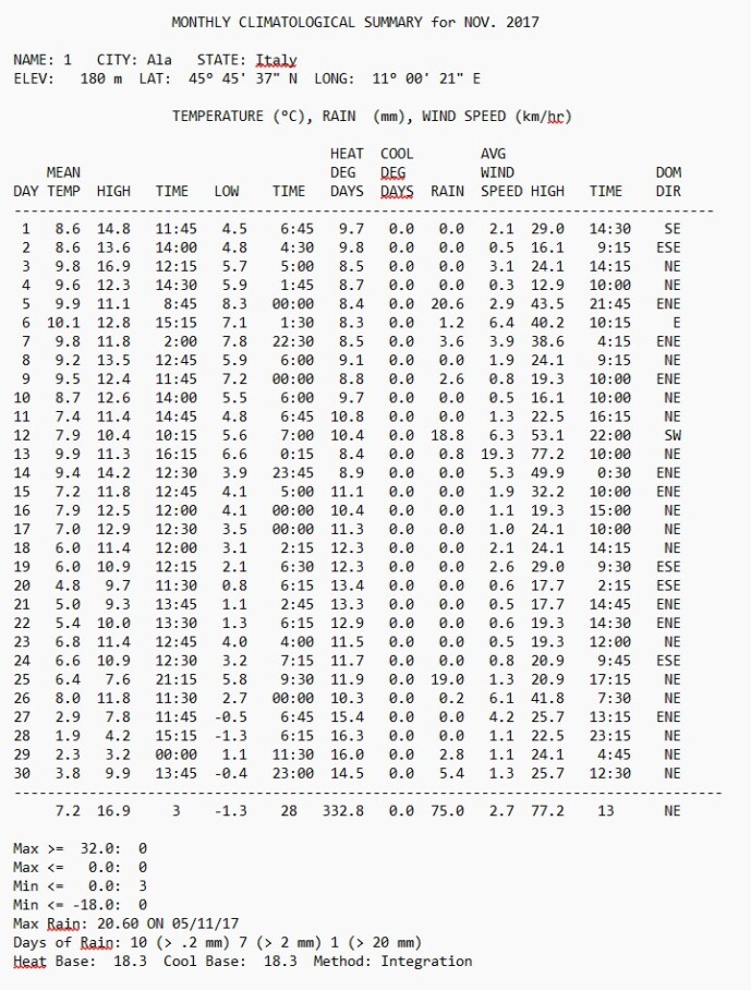 A fianco la tabella dei dati giornalieri in formato internazionale secondo lo standard NOAA