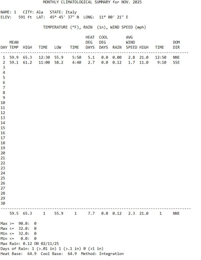 A fianco la tabella dei dati giornalieri in formato internazionale secondo lo standard NOAA