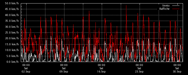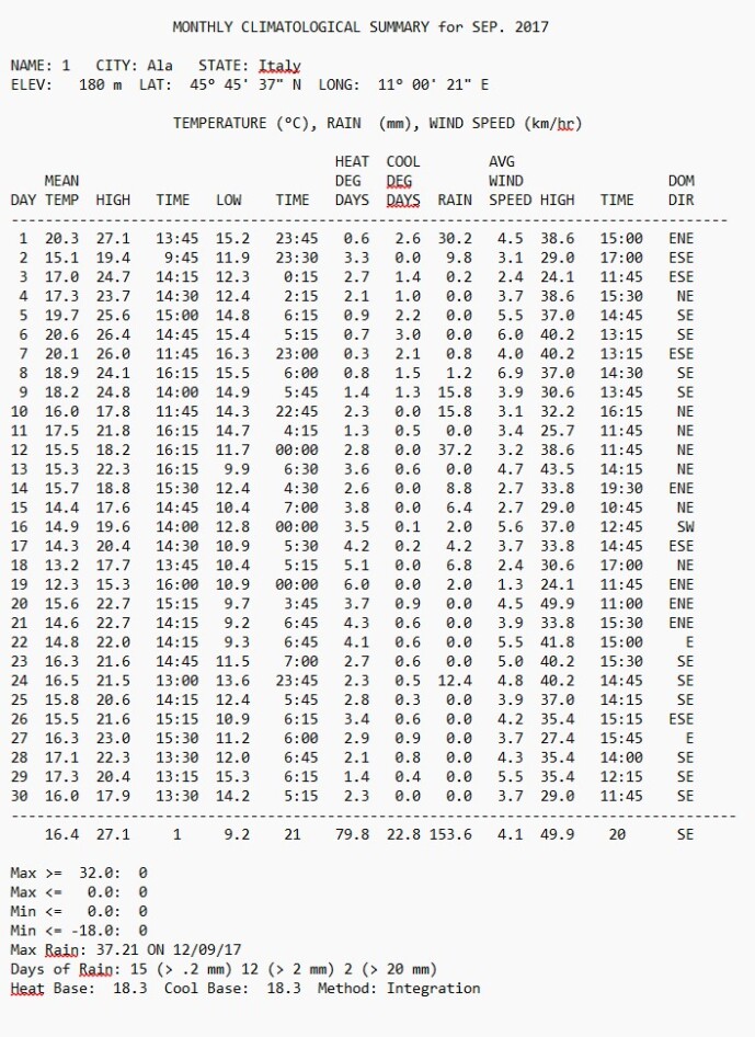 A fianco la tabella dei dati giornalieri in formato internazionale secondo lo standard NOAA