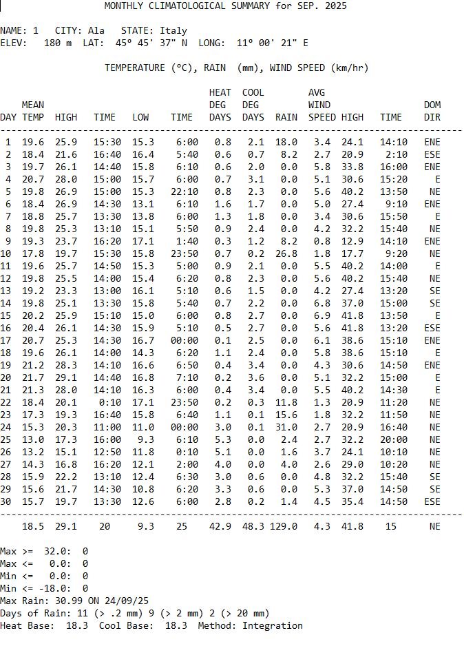 Stazione meteorologica amatoriale di Ala (Trento) - 180m slm - 45°45'37''N - 11°00'21''E